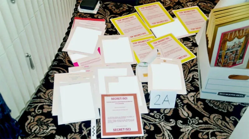 صورة وزعها الـ«إف بي آي» لوثائق تمت مصادرتها من مقر إقامة ترمب في فلوريدا (رويترز)