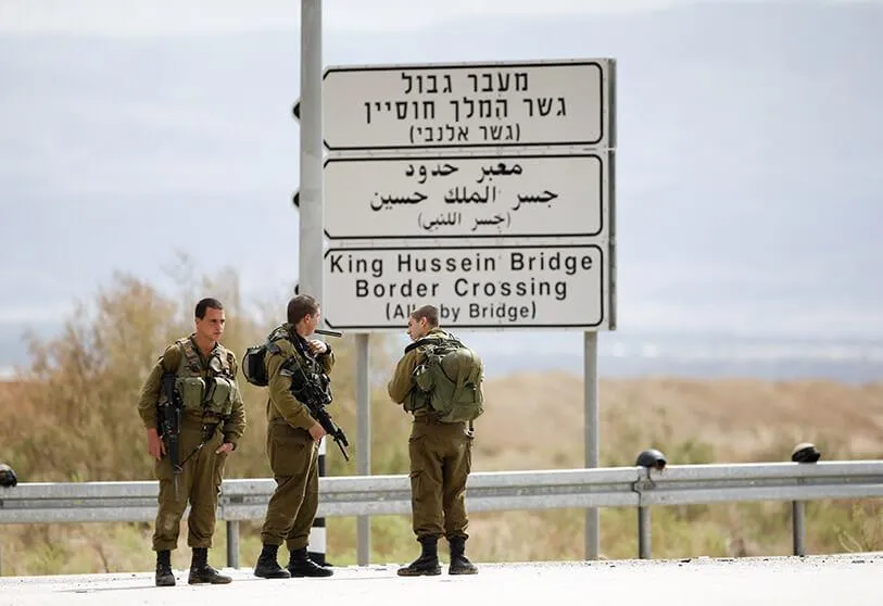 جنود إسرائيليون في الجانب الإسرائيلي من جسر الملك حسين بين الأردن والضفة الغربية (رويترز)