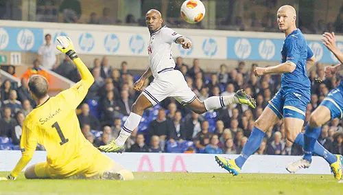 وأحرز جيرمين ديفو هدفين ليقود توتنهام هوتسبير لتحقيق الفوز على الفريق النرويجي 3 - صفر في المجموعة الحادية عشرة. وافتتح ديفو التسجيل في الدقيقة 21 عندما تلقى تمريرة من إيريك لاميلا ووضع الكرة من فوق حارس ترومسو. وأضاف ديفو الهدف الثاني من لمسة سهلة بعد ثماني دقائق ثم اختتم الدنمركي كريستيان إريكسن الثلاثية في الدقيقة 86. وتصدر توتنهام ترتيب المجموعة متقدما على شيريف تيراسبول من مولدوفا الذي تعادل مع ضيفه إنجي الروسي من دون أهداف ويقبع ترومسو في المركز الأخير من دون نقاط. وحقق سوانزي سيتي فوزا كبيرا على مضيفه فالنسيا 3 - صفر في افتتاح منافسات المجموعة الأولى. وأحرز ويلفريد بوني وميشو وجوناثان دي جوزمان الأهداف الثلاثة للفريق الويلزي الذي ينافس في دوري إنجلترا الممتاز في الدقائق 14 و58 و62.