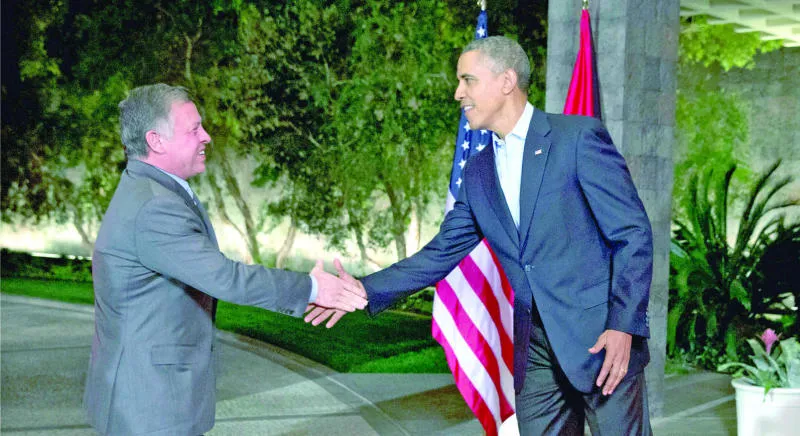 واستقبل الرئيس الأميركي ملك الأردن في كاليفورنيا (غرب) للبحث في الأزمة السورية وعملية السلام الفلسطينية الإسرائيلية، قبل مشاورة إسرائيل والسعودية في الأسابيع المقبلة.