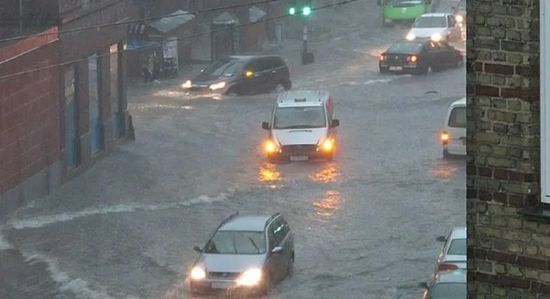 بينما كانت عقارب الساعة تشير إلى الساعة السابعة من مساء الثاني من يوليو (تموز) 2011، ضرب انفجار سحابي تاريخي شمال العاصمة الدنماركية كوبنهاغن، الأمر الذي خلف كميات كبيرة من مياه الفيضانات التي كادت أن تغمر السيارات.
