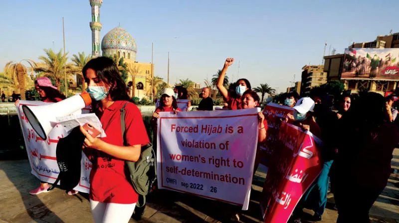 نظم العشرات من الناشطين العراقيين والمحسوبين على «حراك تشرين» الاحتجاجي، إلى جانب عدد من المنظمات والشخصيات النسوية الناشطة في مجال حقوق المرأة، أمس (الاثنين)، وقفة تضامنية مع الشعب الإيراني الذي يتظاهر ضد سلطات بلاده عقب وفاة الفتاة مهسا أميني، بعد تعرضها للعنف أثناء الاعتقال من قبل ما يسمى شرطة الأخلاق الإيرانية.