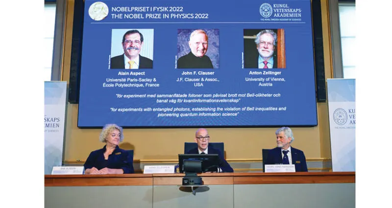كعادتها في السنوات الأخيرة، من حيث التقاسم الثلاثي لجائزة نوبل في الفيزياء، ذهبت الجائزة التي أُعلن عنها أمس (الثلاثاء)، إلى الفرنسي آلان أسبكت، والأميركي جون كلوزر، والنمساوي أنطون زيلينغر، الذين أثرت أبحاثهم علم المعلومات الكمومية، الذي له تطبيقات مهمة، على سبيل المثال في مجال التشفير.