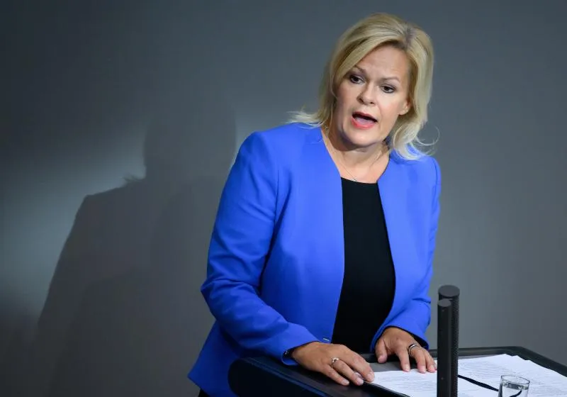 وزيرة الداخلية الألمانية نانسي فيزر تتحدث خلال جلسة عامة في البوندستاغ الألماني الشهر الماضي (د.ب.أ)
