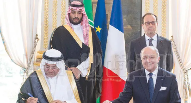 خطت العلاقات السعودية الفرنسية التي تعيش وفق المصادر الفرنسية «شهر عسل» خطوة جديدة بمناسبة زيارة الأيام الثلاثة الرسمية التي يقوم بها ولي ولي العهد السعودي النائب الثاني لرئيس مجلس الوزراء ووزير الدفاع الأمير محمد بن سلمان، إلى فرنسا. فقد شهد قصر الإليزيه عصر أمس، بحضور الرئيس الفرنسي فرنسوا هولاند، والأمير محمد بن سلمان، التوقيع على عشرة عقود واتفاقيات ورسائل نيات تبلغ قيمتها نحو 12 مليار يورو من أجل «ترسيخ الشراكة وإعطائها أبعادًا جديدة» بحسب تعبير وزير الخارجية لوران فابيوس. وجاء ذلك بعد اجتماع ضم الأمير سلمان والرئيس هولاند والوزراء من الجانبين، خصص لتناول الأوضاع الإقليمية وللعلاقات الثنائية. وأهم ما جاءت به الزيارة هو بكل وضوح تأكيد الطرفين على إقامة «شراكة استراتيجية استثنائية ودفعها إلى آفاق جديدة والإسراع في بناء طبقاتها. وبحسب مصدر دبلوماسي فرنسي تابع عن قرب مجريات يوم أمس، فإن الجانبين السعودي والفرنسي عازمان على «الإسراع» في بناء هذه العلاقة و«عدم إضاعة الوقت».