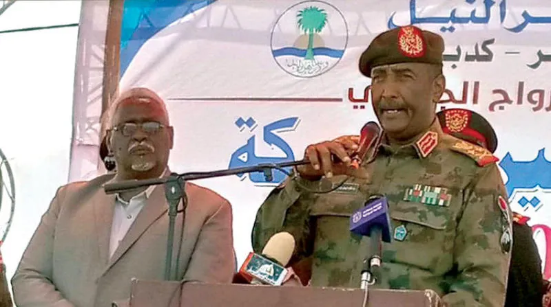 البرهان يلقي خطاباً في منطقة بشمال البلاد أمس (سونا)