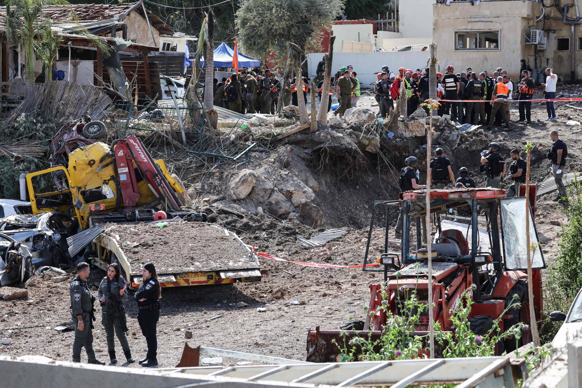 موقع سقوط صاروخ إيراني قرب بيت شيميش وسط إسرائيل يوم السبت 28 مارس 2026 (أ.ف.ب)