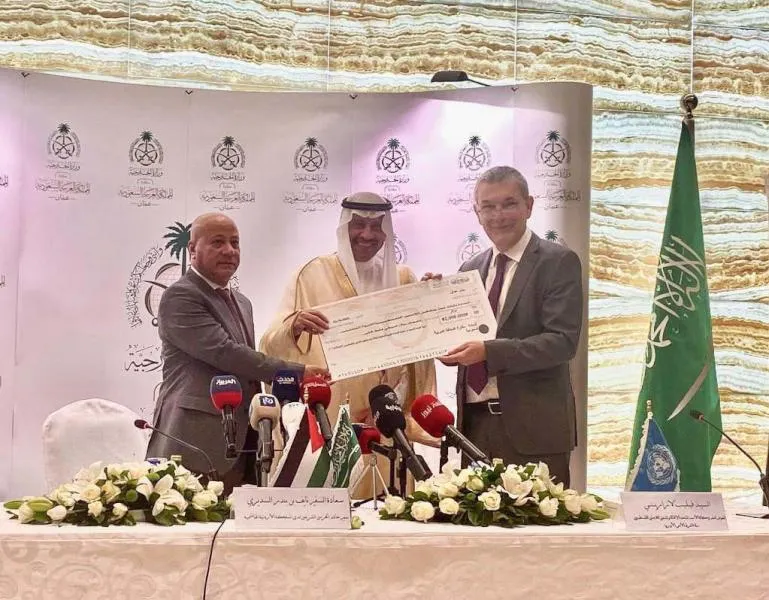 السفير السعودي لدى الأردن نايف السديري يسلّم دعم السعودية لوكالة غوث وتشغيل اللاجئين الفلسطينيين (الشرق الأوسط)