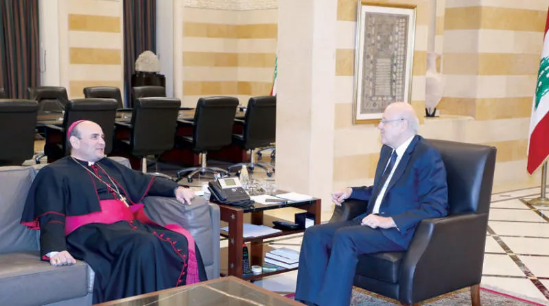 ميقاتي مجتمعاً مع السفير البابوي في بيروت أمس (دالاتي ونهرا)