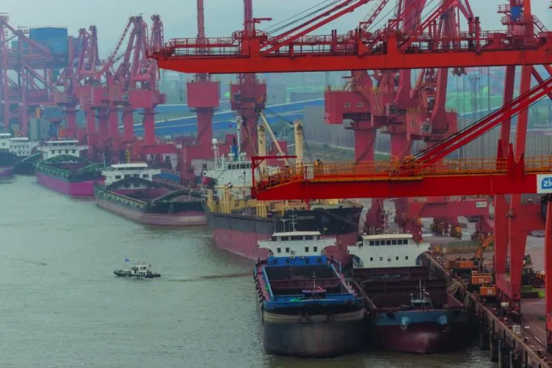 ميناء تشينغ يانغ الصيني الذي يعدّ ميناءً تجارياً مهماً بمنطقة دلتا نهر أليانغتسى للعالم الخارجي (إ.ب.أ)