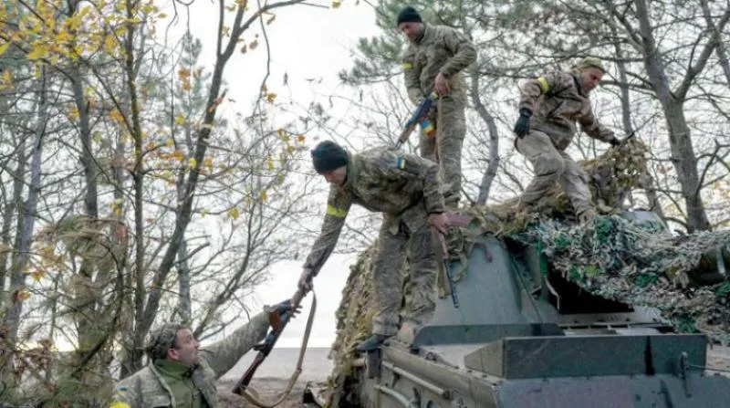وحدة عسكرية أوكرانية تعود إلى موقعها في خيرسون حيث تدور معارك ضارية لاستعادة المدينة من الروس (أ.ف.ب)