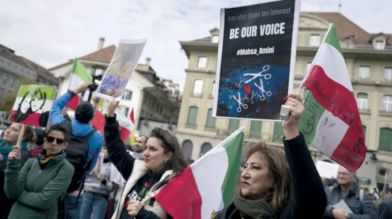 مسيرة تضامنية مع احتجاجات إيران في العاصمة السويسرية أمس (إ.ب.أ)