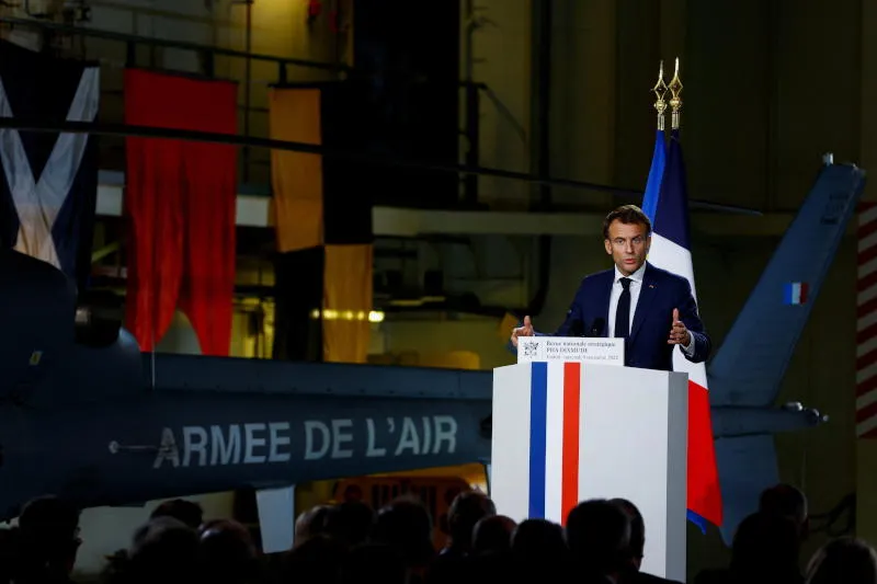 ماكرون أثناء تحدثه عن الاستراتيجية الدفاعية (إ.ب.أ)