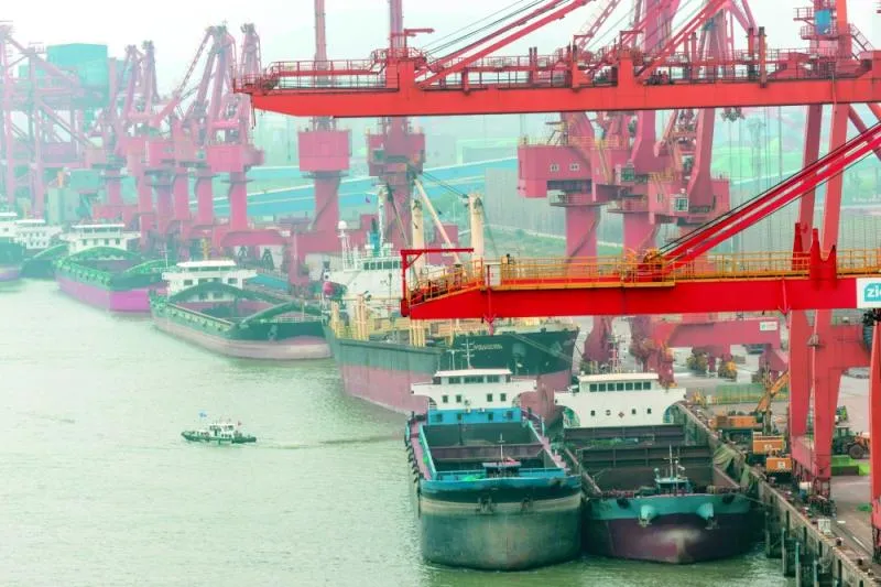 ميناء تشنجيانغ التجاري في الصين الذي يعد مركزاً رئيساً للتجارة مع دول العالم (إ.ب.أ)