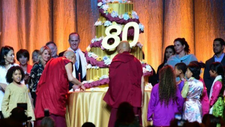 احتفل الزعيم الروحي للتيبت، الدالاي لاما، بعيد ميلاده الثمانين، وسط آلاف من المناصرين والمحتجين، الذين تجمعوا أمس (الأحد) في مدينة أناهيم بولاية كاليفورنيا غرب الولايات المتحدة، وذلك في مستهل ثلاثة أيام من الاحتفالات بمناسبة بلوغه الثمانين.