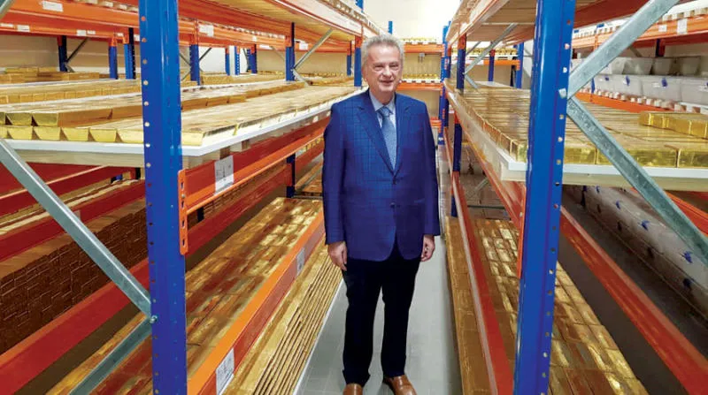 صورة نادرة وزعها البنك المركزي اللبناني لحاكمه رياض سلامة قرب كميات الذهب التي تمثل احتياطي «المركزي» (رويترز)