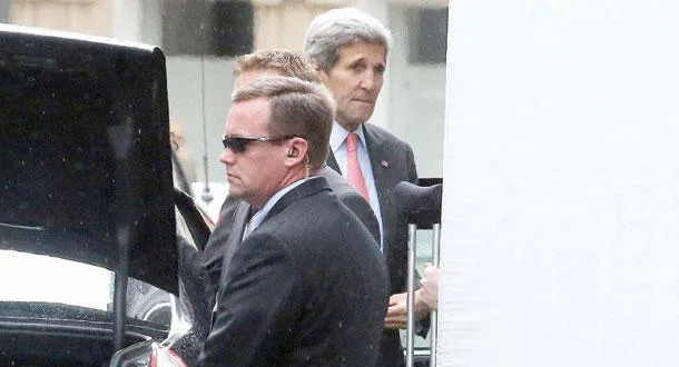 وزير الخارجية الأميركي لدى وصوله إلى مقر المفاوضات الإيرانية في فيينا أمس (أ.ب)