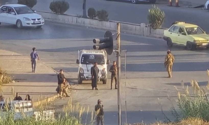 مسلحون من «قسد» عند أحد الحواجز في حي الشيخ مقصود في حلب (إكس)