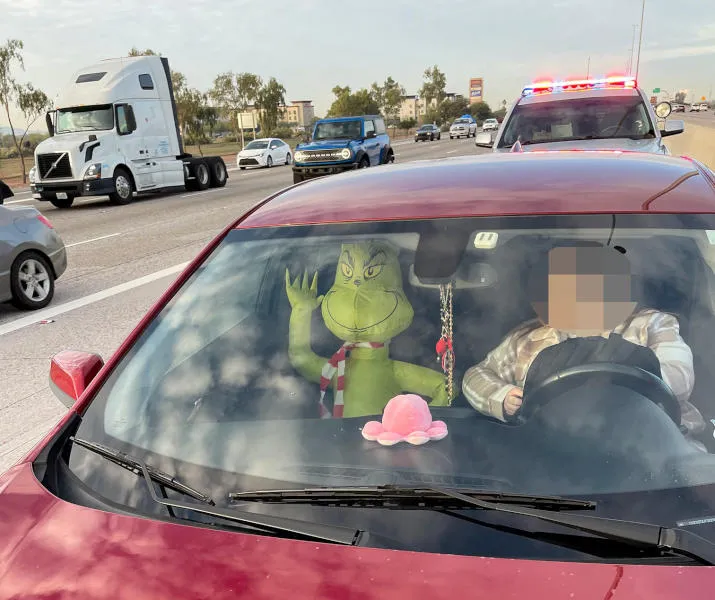 يكفي أن يرافق السائق في الولايات المتحدة راكب واحد حتى يُجاز له سلوك الخط السريع المخصص لتشجيع الأشخاص على تَشارُك السيارات في تنقلاتهم، إلا أنّ الدمى القابلة للنفخ، وحتى تلك التي تجسّد شخصية «غرينش» الميلادية، لا تُعدّ من الركاب، وهو ما اضطرّت شرطة ولاية أريزونا، قبل نحو أسبوعين من عيد الميلاد، إلى أن تنبّه إليه سائقاً جريئاً حاول استخدام هذا المسار، متذرعاً بوجود دميته برفقته، وفقاً لـ«وكالة الصحافة الفرنسية».