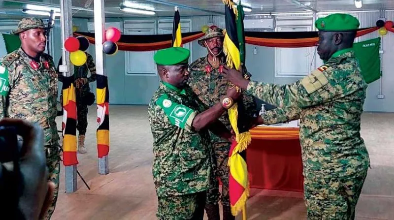 صورة وزعتها وزارة دفاع أوغندا لتنصيب قائد وحدتها الجديد في الصومال