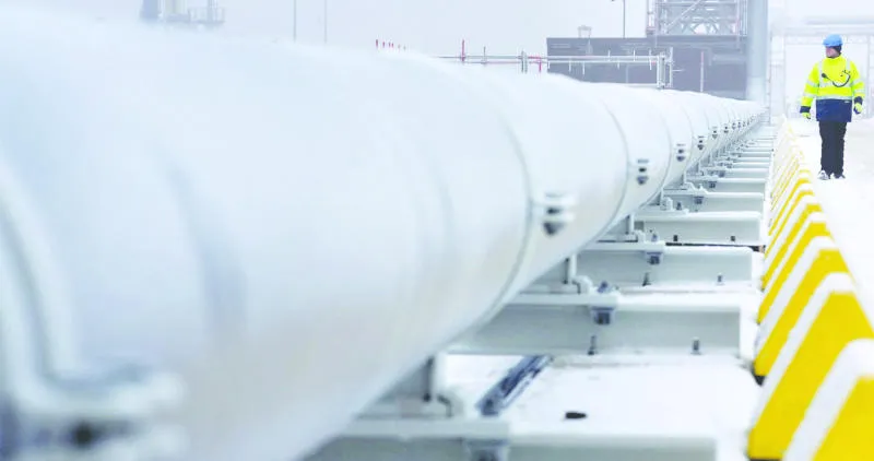 عامل بجوار أنبوب لنقل الغاز في ألمانيا (رويترز)
