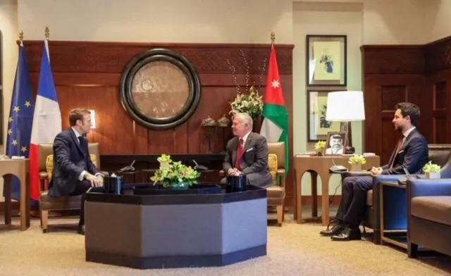 لقاء الرئيس الفرنسي والعاهل الأردني في عمان الأربعاء بحضور الأمير الحسين (رويترز)