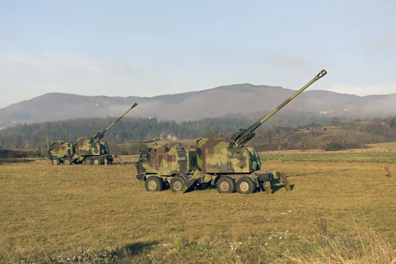 مدافع ميدان من عيار 155 ملم تابعة للجيش الصربي بالقرب من الحدود مع كوسوفو (أ.ب)