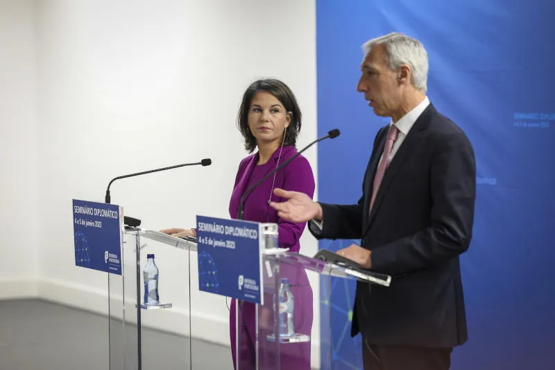 وزيرة الخارجية الألمانية أنالينا بيربوك مع نظيرها البرتغالي خواو جوميز كرافينيو خلال مؤتمر صحافي (إ.ب.أ)
