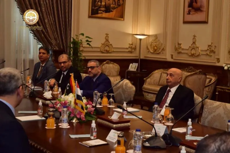 صالح والمشري خلال لقائهما بمجلس النواب المصري الأسبوع الماضي (المكتب الإعلامي لصالح)
