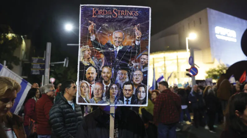 متظاهرون إسرائيليون بتل أبيب شاركوا السبت في مسيرة احتجاجية ضد حكومة نتنياهو الجديدة (إ.ب.أ)