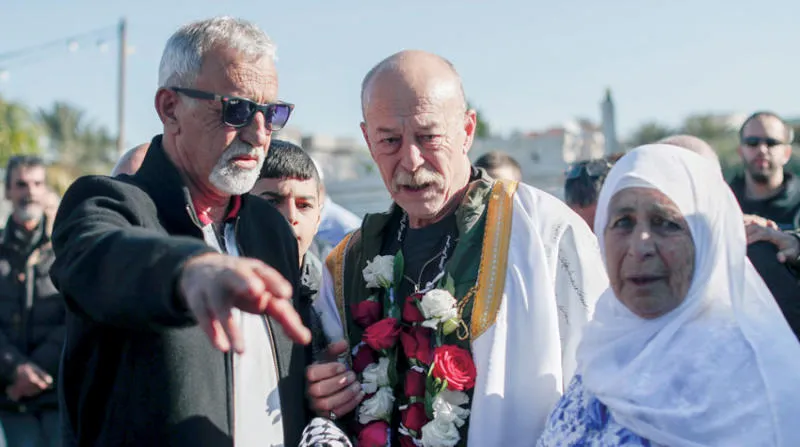 ماهر يونس بين أقاربه بعد إطلاق سراحه (إ.ب.أ)