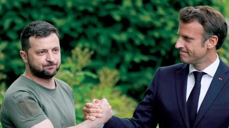 الرئيس الأوكراني مع الرئيس الفرنسي (أ.ب)