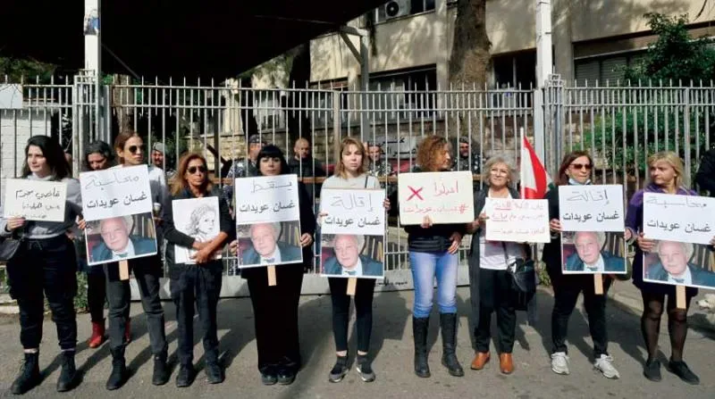 من الاعتصام أمام «قصر العدل» في بيروت أمس للمطالبة بإقالة مدعي عام التمييز (إ.ب.أ)