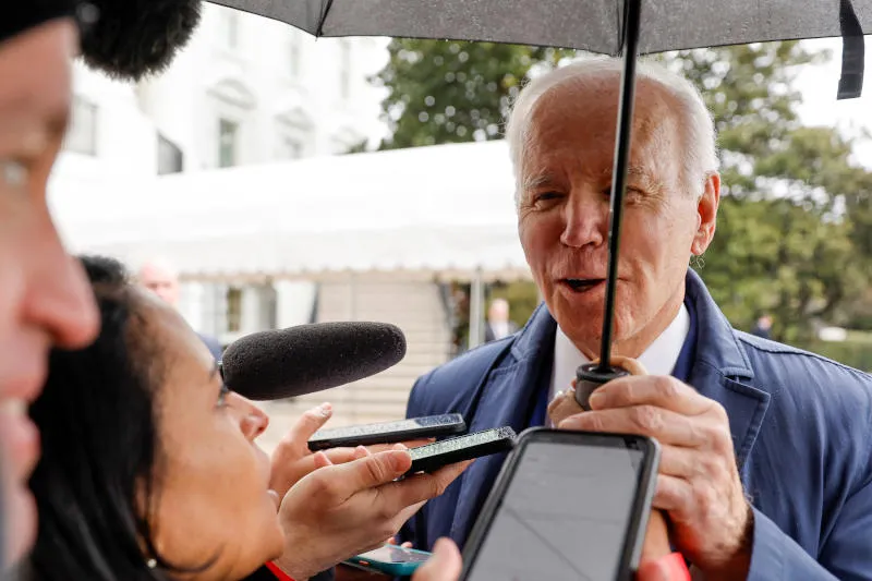 الرئيس الأميركي جو بايدن يتحدث إلى الصحافيين قبل مغادرته البيت الأبيض إلى نيويورك (رويترز)