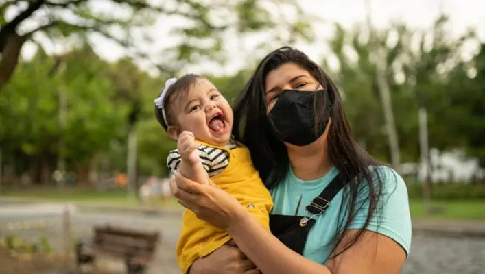 وضع الأم كمامة لا يؤثر في قدرة الطفل على التعرف عليها (غيتي)