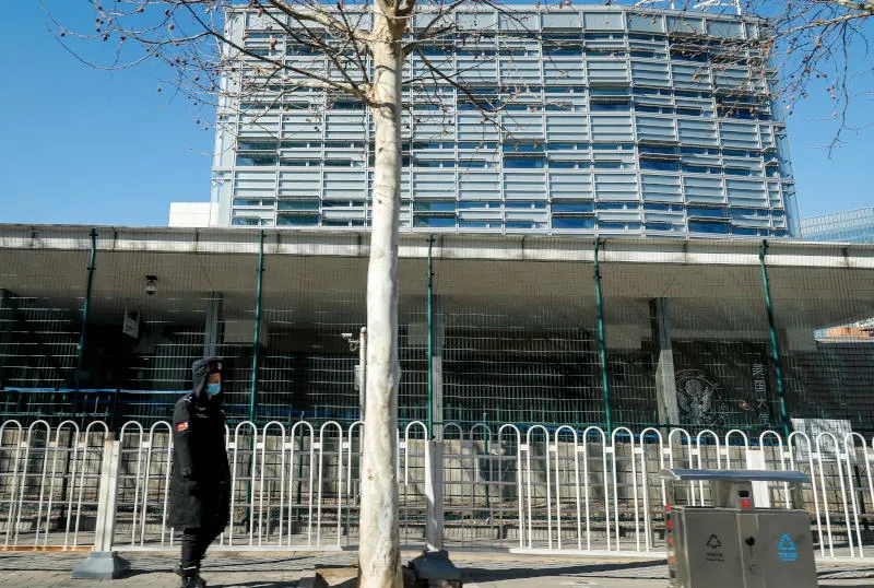 ضابط شرطة أمام سفارة الولايات المتحدة في بكين (إ.ب.أ)