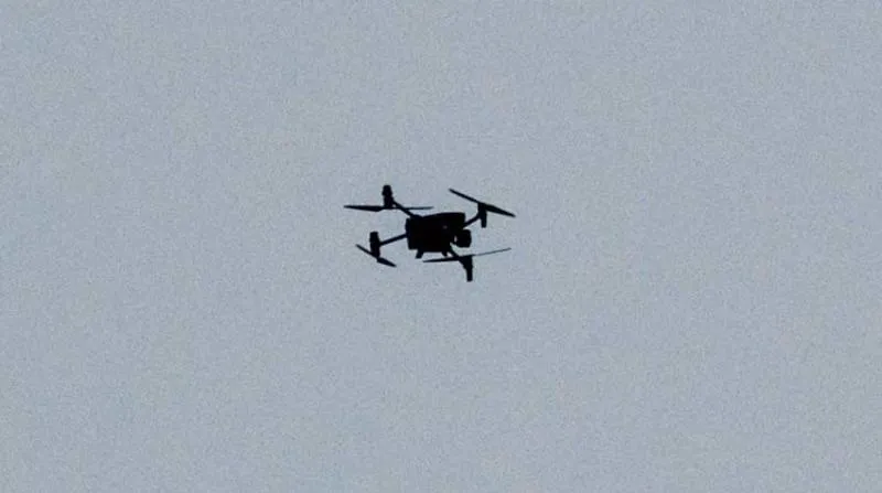 طائرة مسيّرة تحلق في سماء باخموت في الأول من فبراير (أ.ف.ب)