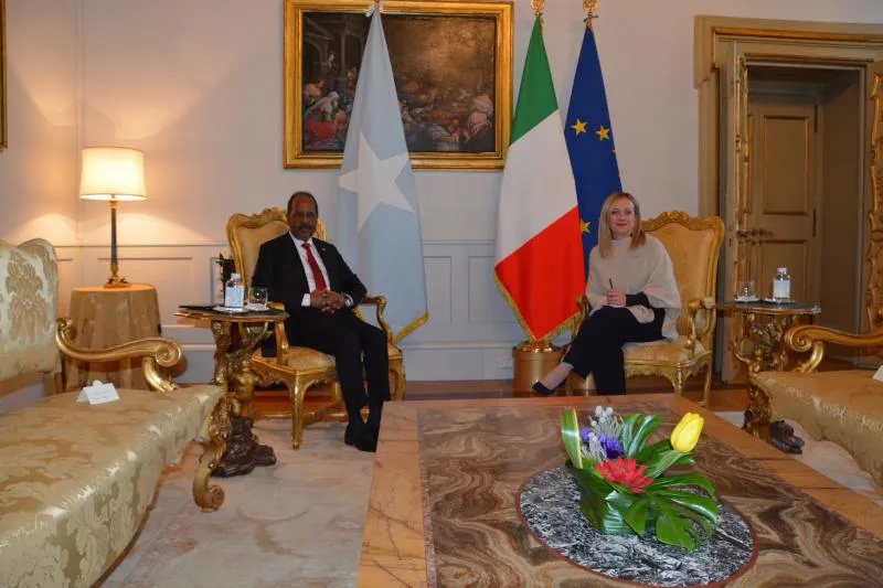 حسن شيخ محمود يلتقي رئيسة الوزراء الإيطالية جورجيا ميلوني في روما (وكالة الأنباء الصومالية)