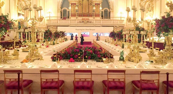 يجب القول إن صور الاستعدادات التي نمر عليها جذابة جدا، لكنها لا تقارن بما سنراه بعدها، حيث نقف أمام المائدة الضخمة التي تنضح بالفخامة والأناقة، كاملة ببطاقات تحمل أسماء ضيوف المأدبة التي أقامتها الملكة العام الماضي لرئيس سنغافورة. بعد التجول في القاعة وتأمل كل القطع الموضوعة أمامنا نشعر وكأننا نسمع همهمات الضيوف الجالسين، ونكاد نرى الملكة في مقعدها على رأس الطاولة.