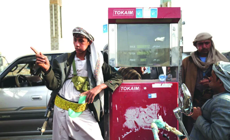 مسلحون يمنعون بيع الوقود في محطة تزود بصنعاء أمس (رويترز)