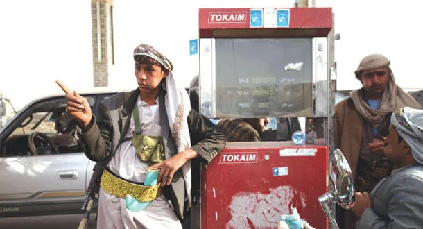 مسلحون يمنعون بيع الوقود في محطة تزود بصنعاء أمس (رويترز)