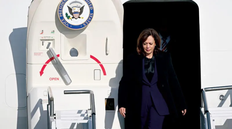 هاريس لدى وصولها إلى ميونيخ أمس (أ.ب)