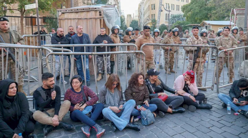 ناشطون أمام مجلس النواب في بيروت خلال تجمع تضامني مع نائبين معتصمين داخل مقر البرلمان في 20 يناير الماضي (أ.ف.ب)