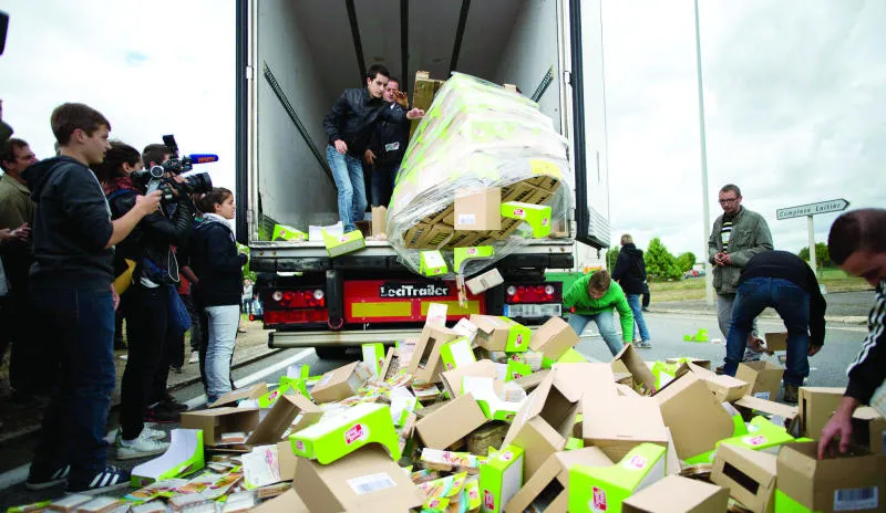 وكان المحتجون قد اعترضوا سيارة شحن إسبانية محملة بالحليب، فيما مُنعت شاحنة أخرى من السير كانت محملة باللحوم المستوردة، مصرين على وضع حواجز لرصد كل منتج غذائي من شأنه أن يؤثر على المنافسة بالسوق الفرنسية.