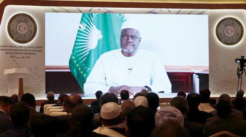 موسى فقي رئيس مفوضية الاتحاد الأفريقي خلال كلمته بمؤتمر تحضيري للمصالحة الوطنية في ليبيا الشهر الماضي (المجلس الرئاسي)