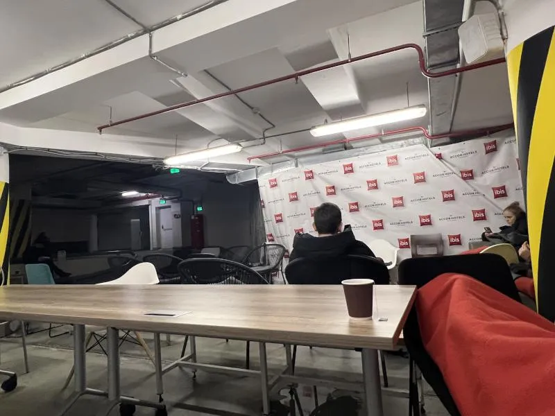 في أحد الفنادق وسط العاصمة، استفاق النزلاء على دوي صافرات الإنذار، ودلف بعضهم نحو موقف للسيارات تحت الأرض، مجهز ببعض المقاعد والأرائك والطاولات والأغطية. أكمل البعض نومه على المقاعد الخشبية، بينما جافى النوم عيون من تملَّكهم الخوف والقلق، وجلسوا في بهو الفندق يغالبهم التعب والإرهاق، منهمكين على هواتفهم بتتبع الأخبار، أو إجراء الاتصال مع أحبتهم لطمأنتهم، أو قراءة بعض الكتب والروايات التي جلبوها معهم، بينما اختار آخرون البقاء في غرفهم وإكمال نومهم، استعداداً لأسبوع جديد؛ فثمة ساعات وليالٍ عديدة هُدرت في أروقة الملاذات الآمنة في الملاجئ، تحسباً لنيران الحرب التي اندلعت شرارتها في فبراير (شباط) من العام الماضي.