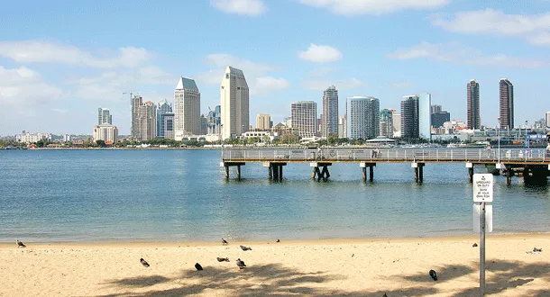 خلعت سان دييغو عنها رداء المدينة القروية المحلية وقاعدة البحرية العسكرية لتصبح منتجعا زاهيا يستمتع بأكثر من مائة كيلومتر من الشواطئ التي تجذب السائحين ونجوم هوليوود ومحبي السباحة والغطس واعتلاء الأمواج المتكسرة والقفز بالمظلات من أعالي الهضاب إلى عباب المحيط الباسيفيكي. أصبحت المدينة سادس أكبر مدينة في الولايات المتحدة وثاني أكبر مدينة في كاليفورنيا بعد لوس أنجليس القريبة، لكن وسطها ليس مزدحما بالسيارات كبقية المدن الكبيرة وفيه حديقة الحيوان المشهورة بـ800 نوع من الحيوانات بما فيها الباندا النادرة والدب القطبي وعالم مخلوقات البحار حيث ترى عروضا ممتعة للحيتان والدلفين وهي تقفز عاليا أمامك لتثبت براعة المدربين المختصين، إنما قد تضيع لتجد شارعا معينا لأن كلمة شارع لها 14 مرادفا بالإنجليزية والإسبانية وحتى الإيطالية أحيانا. رغم إطلالتها على البحر تتميز سان دييغو وخصوصا أرقى ضواحيها المسماة لاهويا (أو الجوهرة بالإسبانية) بالجمال الطبيعي الرائع وقلة الرطوبة لأن الصحراء والواحات وأشجار النخيل والتمر تحميها من الخلف.