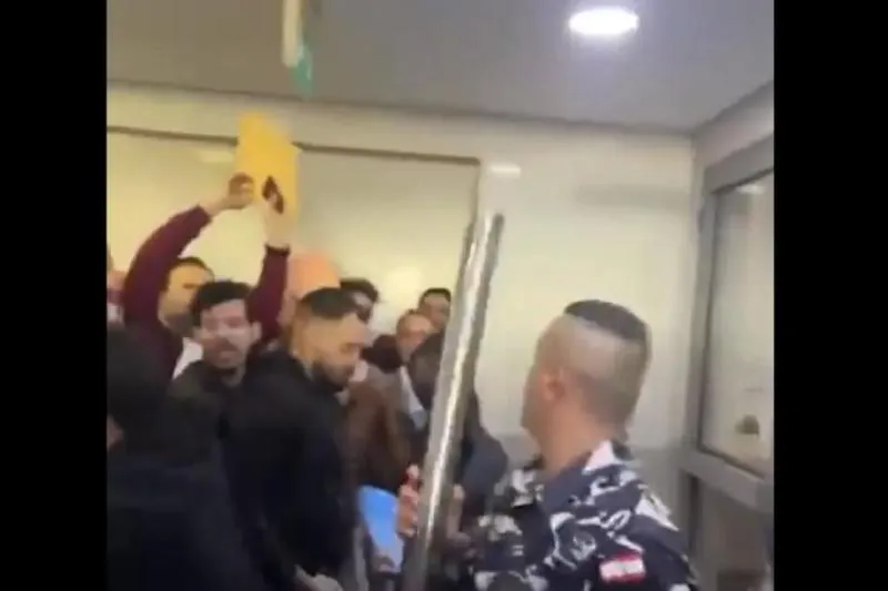 صورة من فيديو تظهر الإشكال الذي وقع بين الأمن وطلاب عراقيين في لبنان (تويتر)
