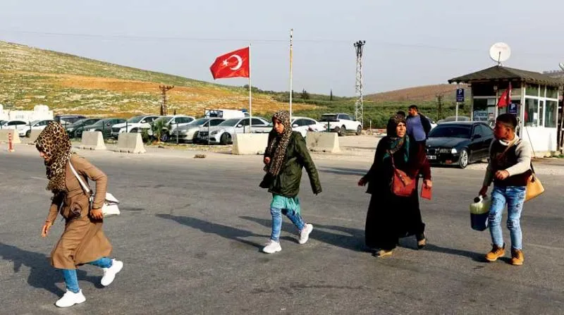 سوريات يعبرن الحدود عائدات الى بلادهن (إ.ب.أ)