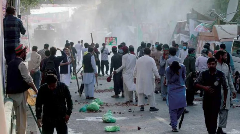 المواجهات بين أنصار عمران خان والشرطة في لاهور (رويترز)